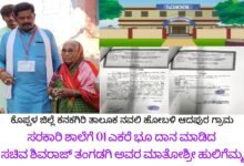 - ಶಾಲೆಗೆ 01 ಎಕರೆ ದಾನ ನೀಡಿದ ಸಚಿವ ಶಿವರಾಜ್ ಎಸ್ ತಂಗಡಗಿ ಅವರ ತಾಯಿ ಮಾತೋ ಶ್ರೀ ಹುಲಿಗೆಮ್ಮ ನವರು