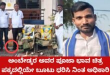 - ರಾಷ್ಟ್ರಪಿತ ಹಾಗೂ ಸಂವಿಧಾನ ಶಿಲ್ಪಿ ಬಿ.ಆರ್ ಅಂಬೇಡ್ಕರ ಅವರ ಪೂಜಾ ಭಾವ ಚಿತ್ರ ಪಕ್ಕದಲ್ಲಿಯೇ ಬೂಟು ಧರಿಸಿ ನಿಂತ ಪಿಡಿಓ. ದಲಿತ ಮುಖಂಡ ತೀವ್ರ ಖಂಡನೆ ಕ್ರಮಕ್ಕೆ ಆಗ್ರಹ