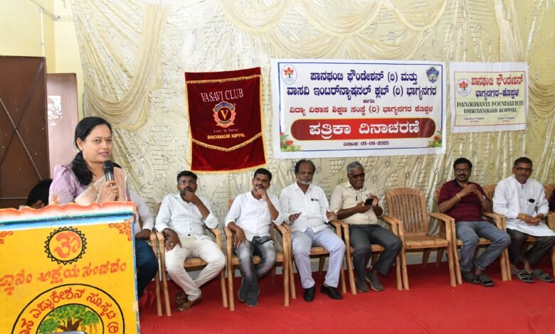 ಕೊಪ್ಪಳ : ಭಾಗ್ಯನಗರದ ವಿದ್ಯಾವಿಕಾಸ ಶಾಲೆಯ ಸಭಾ ಭವನದಲ್ಲಿ ಫಾನಘಂಟಿ ಫೌಂಡೇಶನ್, ವಾಸವಿ ಕ್ಲಬ್ ವತಿಯಿಂದ ಪತ್ರಿಕಾ ದಿನಾಚರಣೆ ಮತ್ತು ಪತ್ರಕರ್ತರಿಗೆ ಸನ್ಮಾನ ಸಮಾರಂಭವನ್ನು ಹಮ್ಮಿಕೊಳ್ಳಲಾಗಿತ್ತು.
