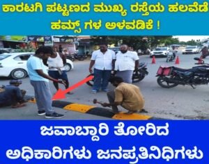 ಕಾರಟಗಿ : ಕಾರಟಗಿ ಪಟ್ಟಣದಲ್ಲಿ ವಾಹನಗಳ ಸಂಚಾರ ದಟ್ಟಣೆಯಿಂದಾಗಿ ಹಲವೆಡೆ ರಸ್ತೆಯ ಮೇಲೆ ಅಪಘಾತಗಳು ನಡೆದಿವೆ, ಜನದಟ್ಟಣೆಯಲ್ಲಿ ವಾಹನ ಸವಾರರ ನಿರ್ಲಕ್ಷ್ಯ ಚಾಲನೆಯಿಂದಾಗಿ ಸಾರ್ವಜನಿಕರು ಪಾದಾಚಾರಿಗಳು ರಸ್ತೆಯ ಮೇಲೆ ನಿರ್ಭೀತವಾಗಿ ಓಡಾಡಲು ಭಯಭೀತರಾಗುತ್ತಿದ್ದರು ಮತ್ತು ಶಾಲಾ ಕಾಲೇಜುಗಳಿಗೆ ಬರುವ ವಿದ್ಯಾರ್ಥಿಗಳು ಸಹ ರಸ್ತೆಯ ಮೇಲೆ ಸ್ಪೀಡ್ ಬ್ರೇಕರ್ ಗಳಿಲ್ಲದ ಕಾರಣದಿಂದಾಗಿ ವೇಗದ ವಾಹನಗಳಿಗೆ ಭಯಭೀತರಾಗಿದ್ದರು. ಪಟ್ಟಣದ ಸಾರ್ವಜನಿಕರು ಹಾಗೂ ದಲಾಲಿ ಕಿರಾಣಿ ವರ್ತಕರು ಹಲವು ಬಾರಿ ಕಾರಟಗಿ ಪುರಸಭೆಯ ಅಧಿಕಾರಿಗಳಿಗೆ ರೋಡ್ ಹಮ್ಸ್ ನಿರ್ಮಿಸಲು ಮನವಿ ಸಲ್ಲಿಸಿದ್ದರು.