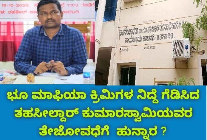 ಭೂ ಮಾಫಿಯಾ ಕ್ರಿಮಿಗಳ ನಿದ್ದೆ ಗೆಡಿಸಿದ ತಹಸೀಲ್ದಾರ್ ಕುಮಾರಸ್ವಾಮಿಯವರ ತೇಜೋವಧೆಗೆ ಹುನ್ನಾರ ?