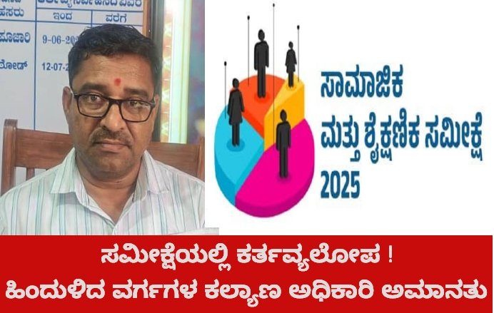 ಸಮೀಕ್ಷೆ ಕಾರ್ಯದಲ್ಲಿ ಕರ್ತವ್ಯ ಲೋಪ ! ಹಿಂದುಳಿದ ವರ್ಗಗಳ ಕಲ್ಯಾಣಾಧಿಕಾರಿ ಅಮಾನತ್