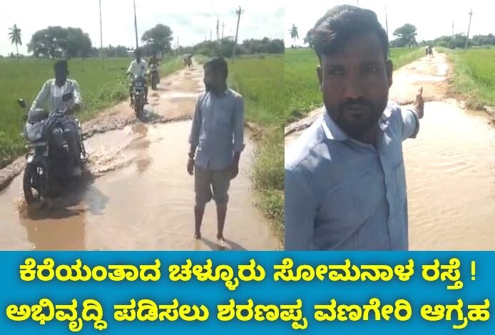 ಕೆರೆಯಂತಾದ ರಸ್ತೆ, ಸಂಚಾರಕ್ಕೆ ತೊಂದರೆ ! ರಸ್ತೆ ಅಭಿವೃದ್ಧಿ ಪಡಿಸುವಂತೆ ವಣಗೇರಿ ಒತ್ತಾಯ