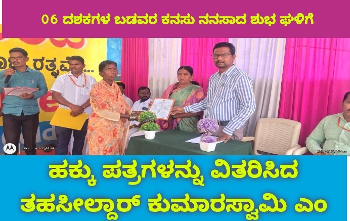 06 ದಶಕಗಳ ಕನಸು ನನಸಾದ ಶುಭ ಘಳಿಗೆ. ಬಡವರಿಗೆ ಹಕ್ಕು ಪತ್ರಗಳನ್ನು ವಿತರಿಸಿದ ತಹಸೀಲ್ದಾರರು