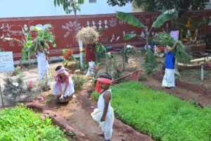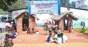 ಅದೇ ರೀತಿ ವ್ಯವಸಾಯದ ಸಾಮಗ್ರಿಗಳಾದ ಎತ್ತು,ಬಂಡಿ,ನೇಗಿಲು,ಹೊಲ,ಗುಡಿಸಲು ಮನೆ,ಕೆರೆ ಬಾವಿಗಳನ್ನು ನಿರ್ಮಿಸುವುದರೊಂದಿಗೆ ಹಳ್ಳಿಯ ಸಂತೆಯ ಮಾರ್ಕೆಟ್,ಬೀಸುವುದು,ಕುಟ್ಟುವುದು, ರುಬ್ಬುವುದು ಹಾಗೂ ಅಡುಗೆ ಮಾಡುವ ದೃಶ್ಯಗಳೊಂದಿಗೆ ಹಳ್ಳಿಯ ಸಂಸ್ಕೃತಿ, ಸಂಪ್ರದಾಯ ಮತ್ತು ರೈತರ ಸಮಸ್ಯೆಗಳನ್ನೂ ಅರ್ಥಪೂರ್ಣವಾಗಿ ವಿವರಿಸಿದರು. ಹಾಗೂ ಹೊಲಗದ್ದೆಗಳಲ್ಲಿ ಭತ್ತದ ಸಸಿ ಮಡಿ, ರಾಗಿ,ಸಾಸ್ವಿ ಬೆಳೆ,ತರಕಾರಿ ಬೆಳೆ, ಸಿರಿಧಾನ್ಯಗಳ ಪ್ರದರ್ಶನ ಹಾಗು ಇನ್ನಿತರ ಬೆಳೆಗಳನ್ನು ಬೆಳೆದು ಪಾಲಕರಿಗೆ ಸಮಗ್ರ ಮಾಹಿತಿ ನೀಡಿದರು. ಕಾರ್ಯಕ್ರಮವನ್ನು ಪ್ರಾರ್ಥನೆ ಮತ್ತು ರೈತ ಗೀತೆಯೊಂದಿಗೆ ಪ್ರಾರಂಭಿಸಿದ ವಿದ್ಯಾರ್ಥಿಗಳು, ಹಳ್ಳಿಯ ಸೊಗಡಿನ ಕುರಿತಾದ ವಿವಿಧ ಜಾನಪದ ಗೀತೆಗಳು ಮತ್ತು ಜನಪದ ನೃತ್ಯಗಳನ್ನು ಮಾಡಿಸಿ ಮನರಂಜಿಸಿದರು.